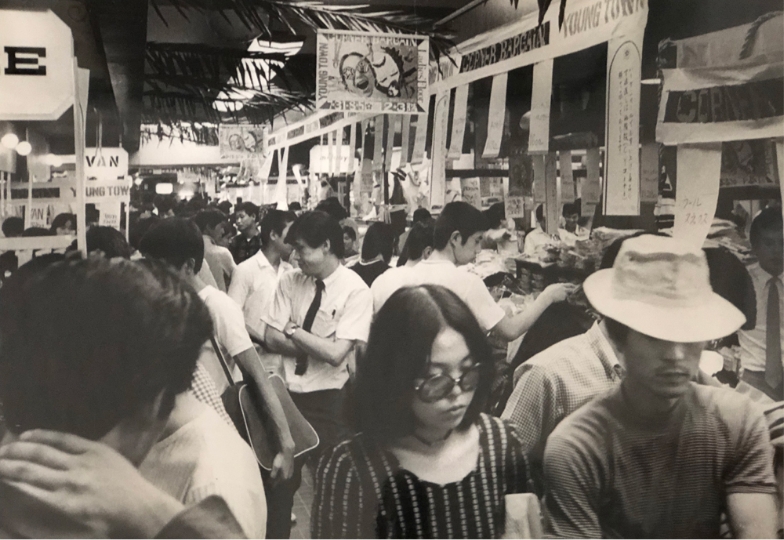 「マクドナルド」関西1号店が1Fにオープン。開店2日目には、当時のマクドナルドの売上世界記録を作る。1F正面玄関には、「語らいの泉」が誕生し、京都の新名所となる。コーナー展開した「VAN」、「JUN」などのアイビールックが、当時ビッグトレンドとなる。