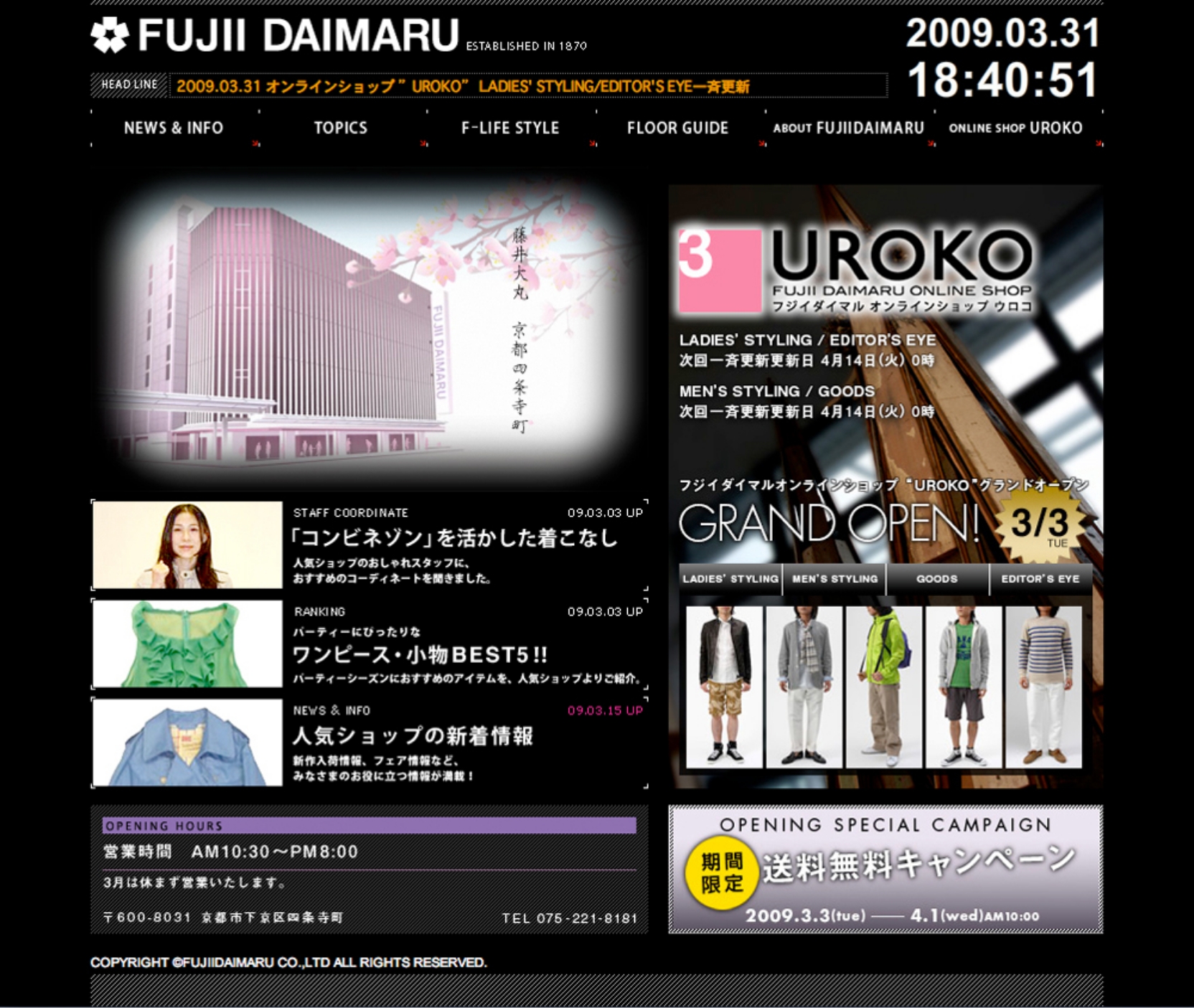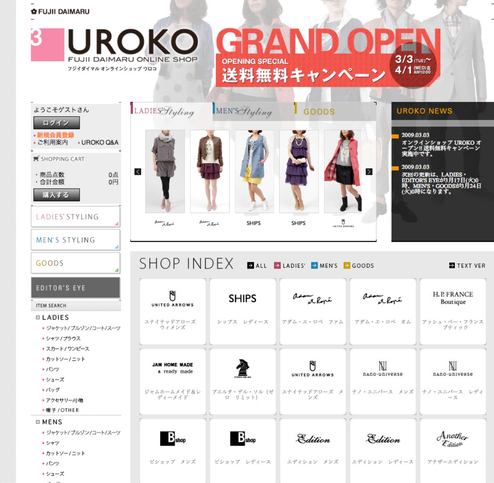 藤井大丸の通販サイトのオンラインショップ「UROKO」を開設。“最新ファッションをショップスタッフがスタイリングで提案”をコンセプトに、バーチャルとリアルの店舗連動型ファッションサイトをスタートさせる。