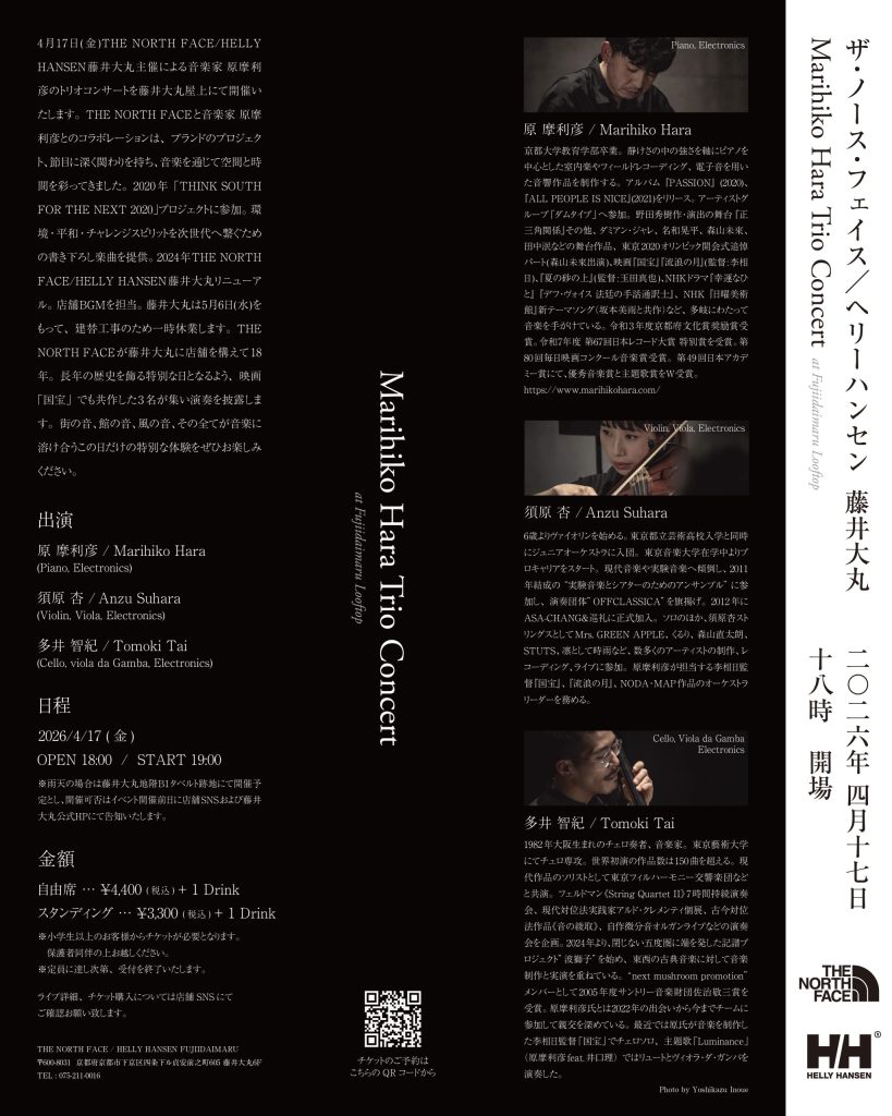 THE NORTH FACEが現在の藤井大丸に店舗を構えて18年。長年の歴史を飾る特別な日となるよう、映画「国宝」でも共作した3名が集い演奏を披露します。この日だけの特別な体験をぜひお楽しみください。