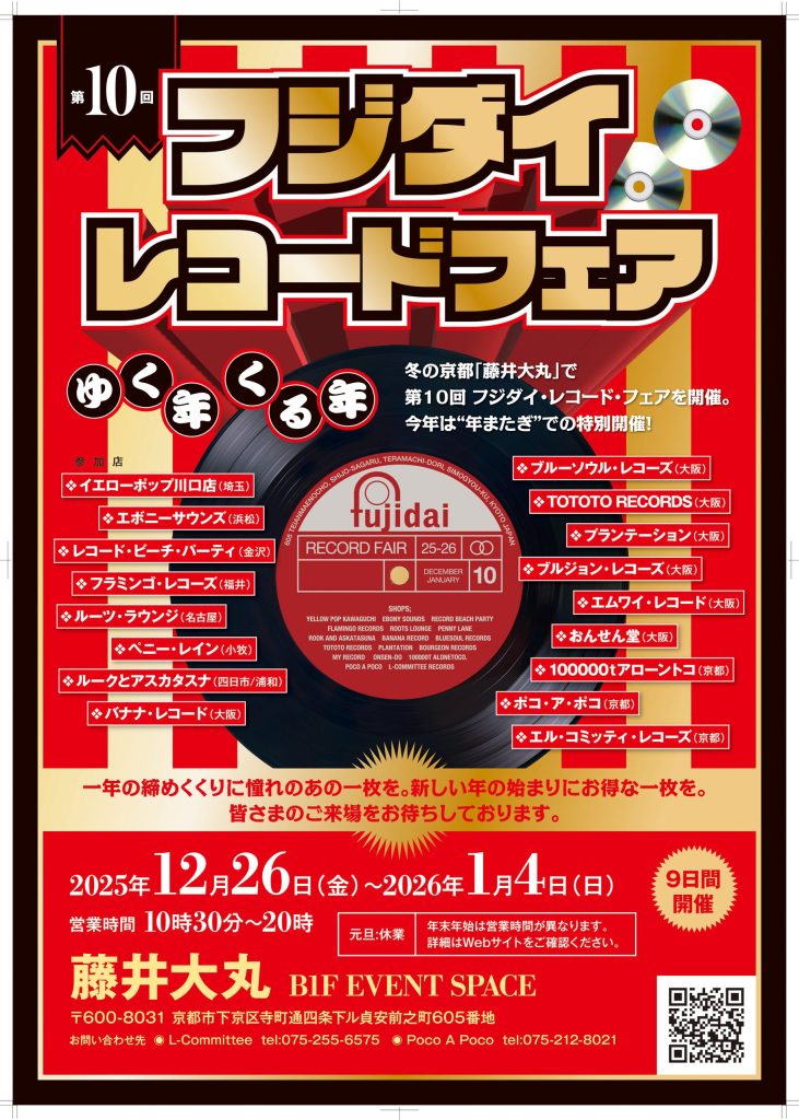 12月26日(金)~2026年1月4日(日)※ 元旦は休業 となります。B1イベントスペース 「中古レコード・CDフェア」開催 年末年始を音楽とともにお楽しみい…