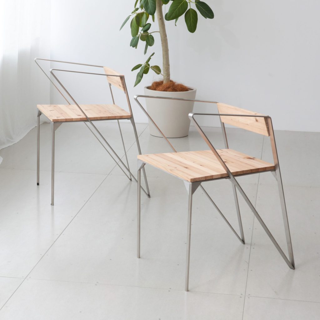 バネのようにしなる構造で、体重をやわらかく受け止める「Kiju chair」と、