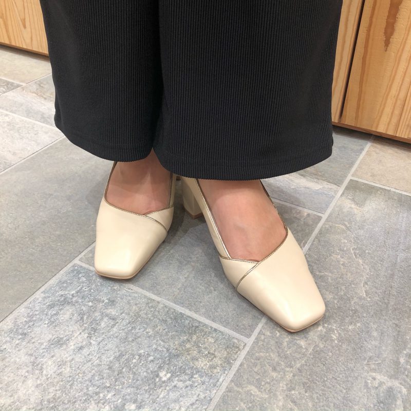 A de Vivre【NEW ARRIVAL】スクエアトゥゴールドリムレザーパンプス