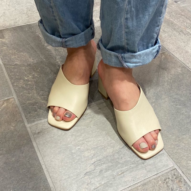 柔らかい本革を使用した足当たりがソフトなミュールサンダル