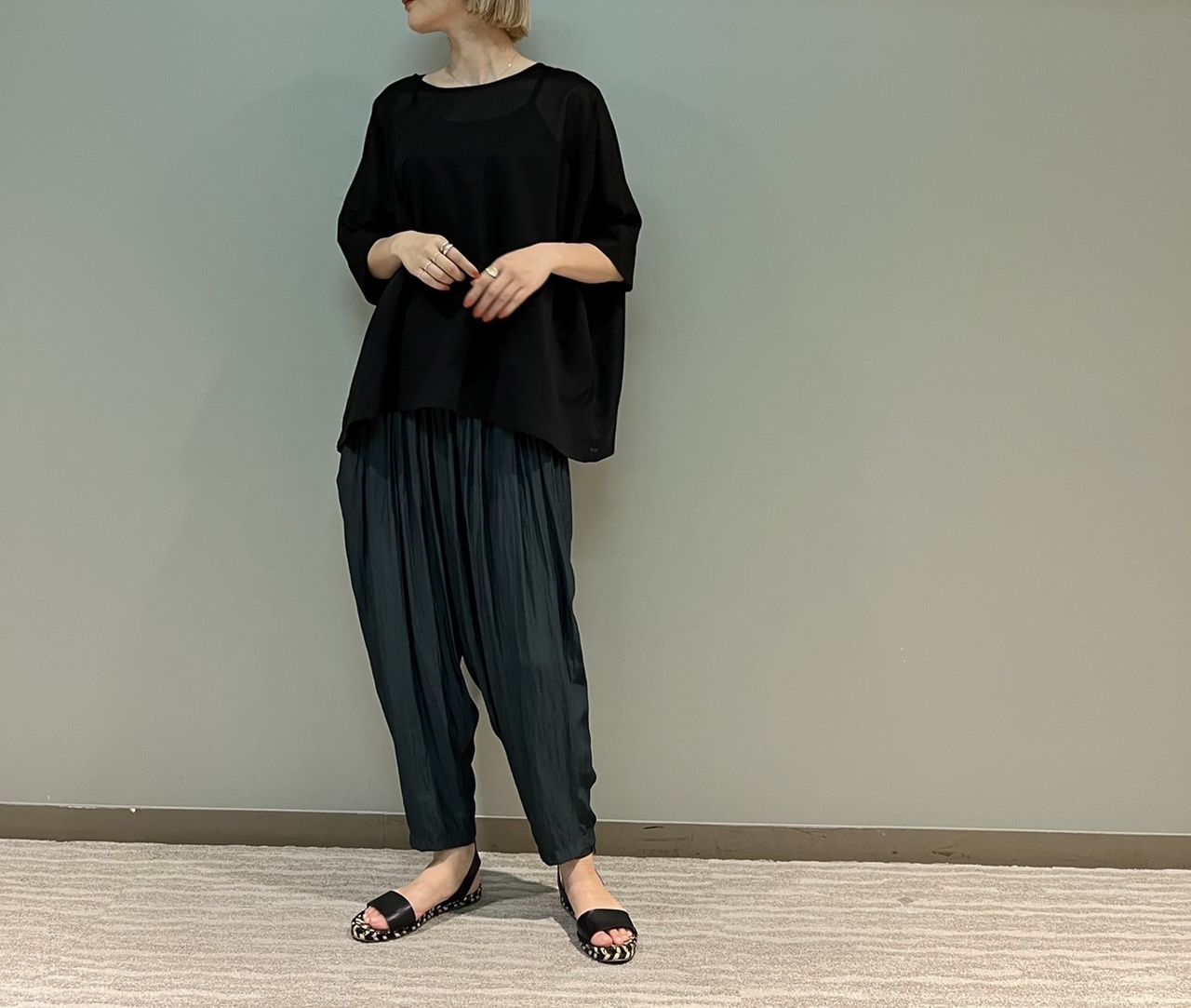 割織ポリエステル・チャイニーズクレープ ギャザーテーパードパンツ