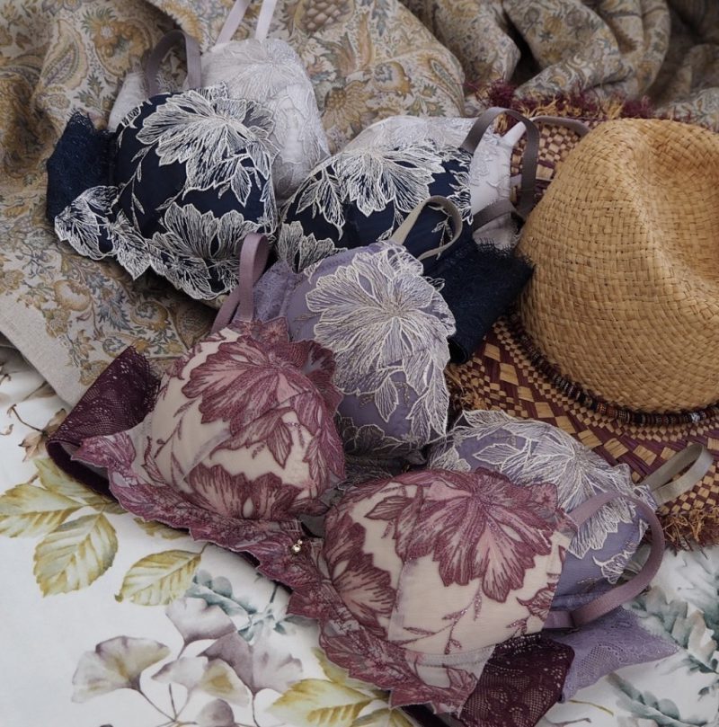 エレガントな印象の大花柄の刺繍レースを使用し、カップに一輪の花が咲く優雅で美しいデザイン✨