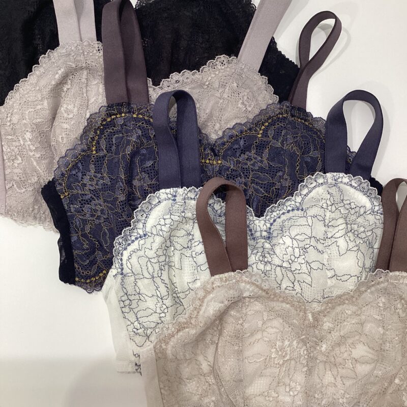 レースタイプはブラレットのような見た目で、バストトップがひびきにくいカップなので、日中のお家時間にも使いやすいのもポイント!!✨