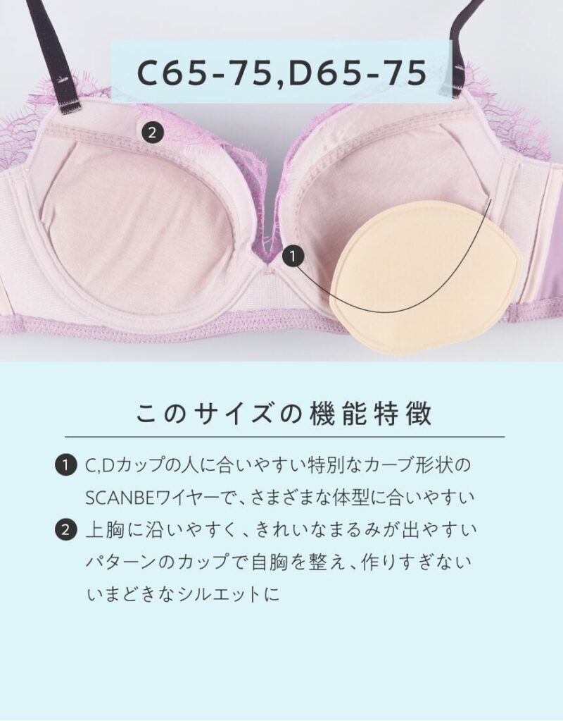 それぞれのバストボディタイプに合いやすいSCANBEワイヤーを使用し、当たりやずれを軽減します。