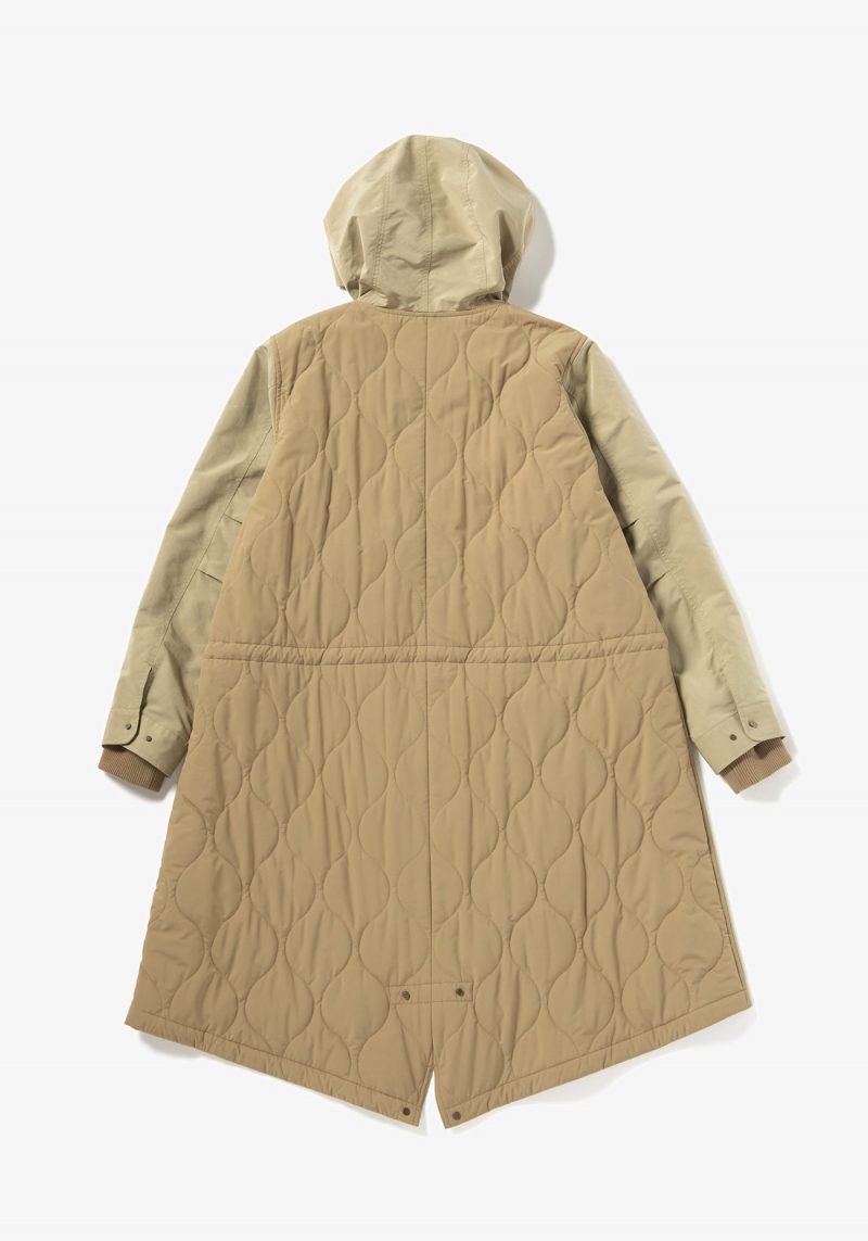 起毛感のある独特なタッチのナイロン素材をベースに、フィッシュテイルのライナーに使われるひょうたんキルトを後身頃に切り替えた新しいフィッシュテイルパーカです!