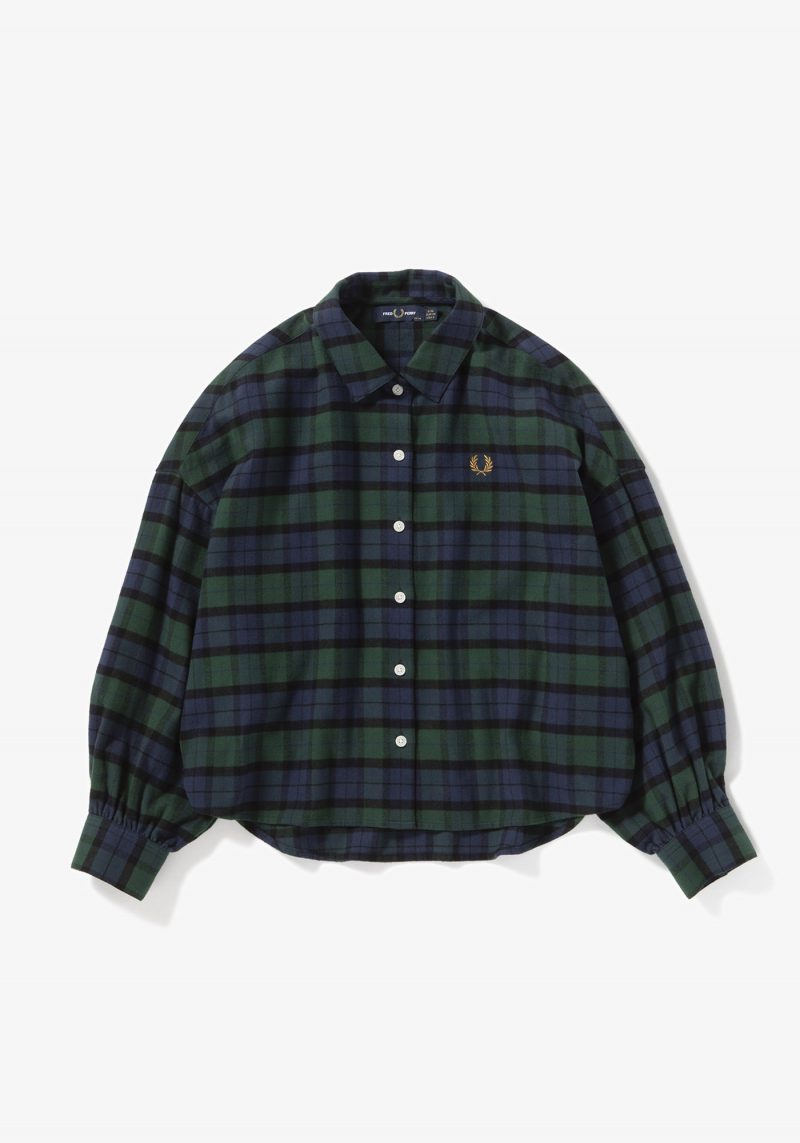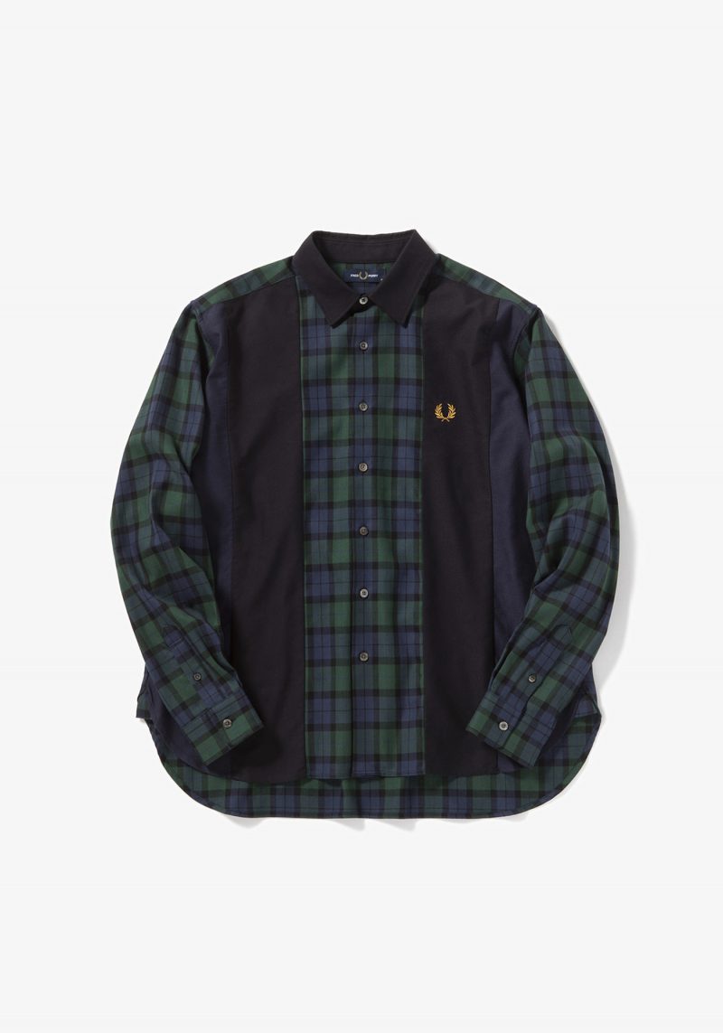ブラックウォッチ柄をベースに同色のオックスフォード生地で切り替えしを加えたデザインシャツです!