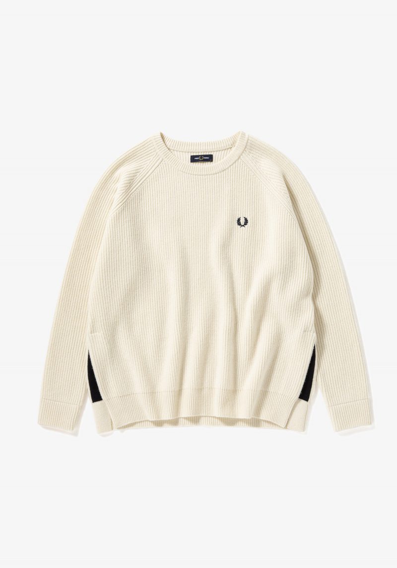 少しゆったり目のサイズ感で仕上げたミドルゲージのリブ編みクルーネックニットです。