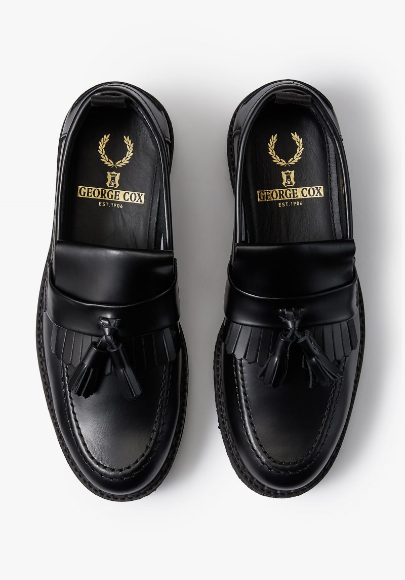 ジョージコックスの代名詞でもあるクレープソールを使用したタッセルローファーで、色はブラックとバーガンディの二色です。