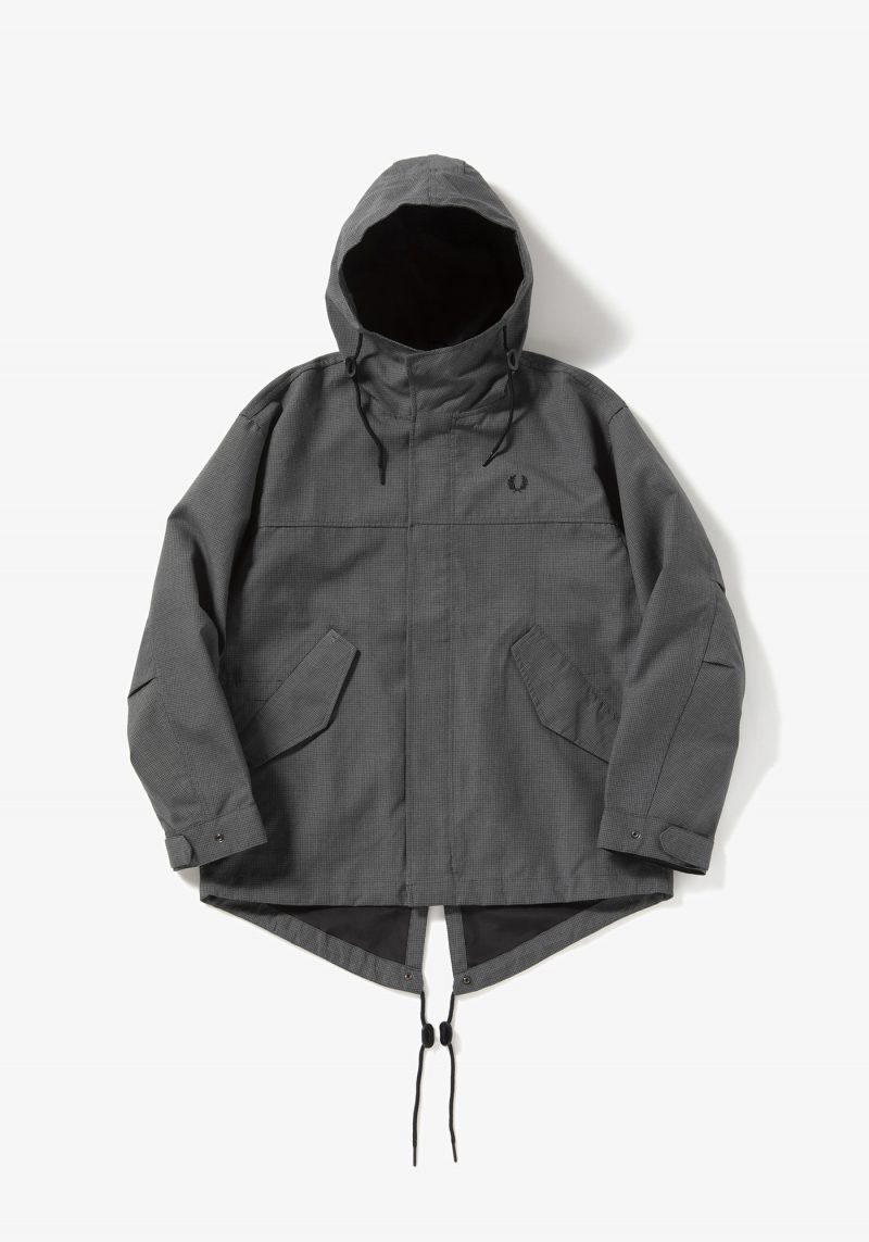 同じくマイクロジャガードチェック柄で仕上げたショートタイプのフィッシュテールパーカーになります。