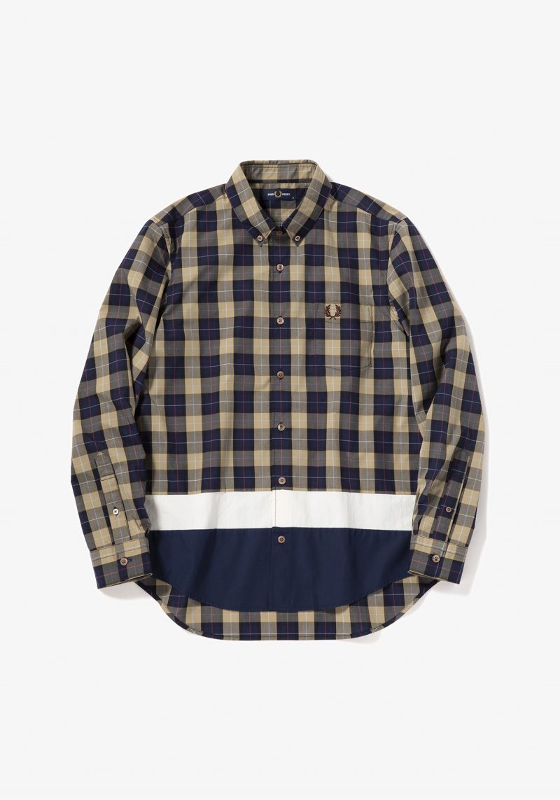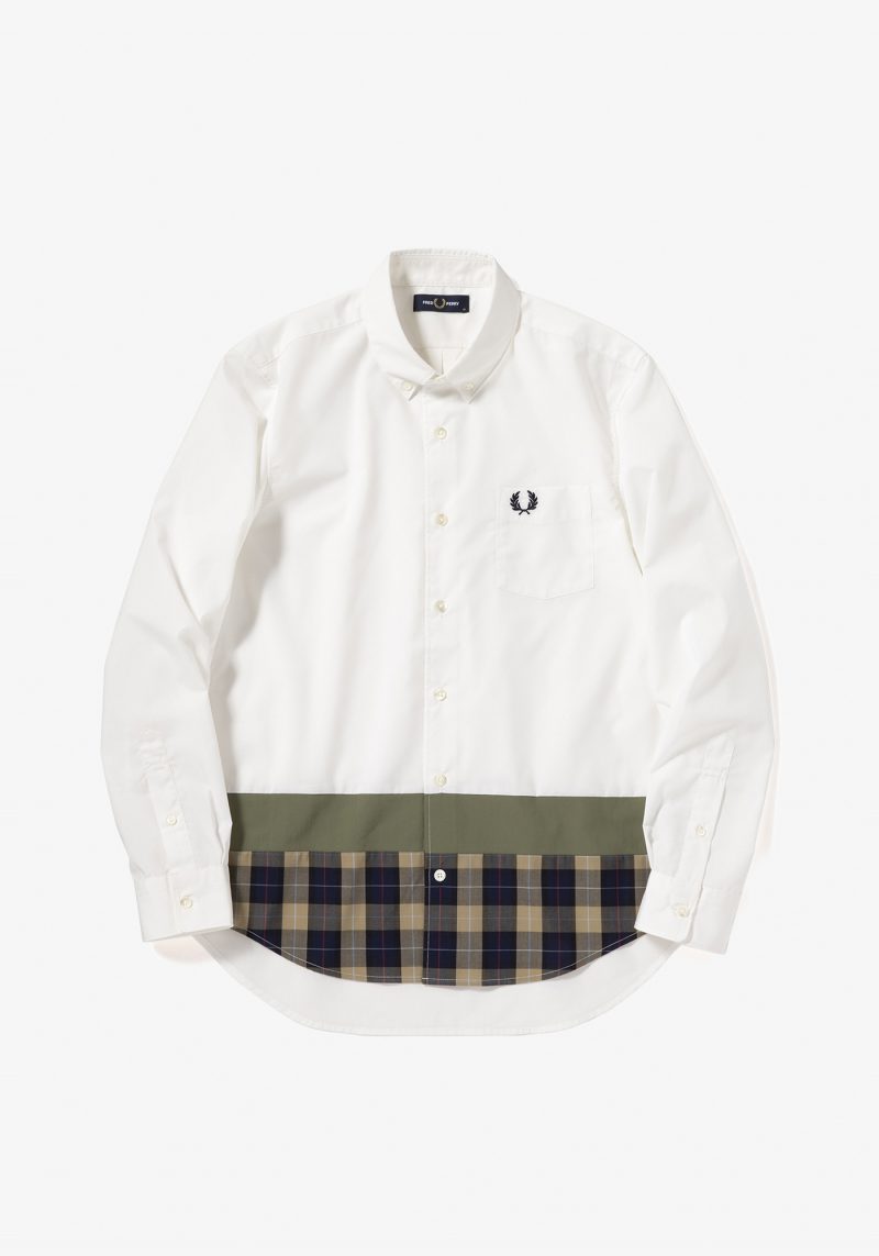 裾部分の無地とチェック柄の切り替えが特徴のボタンダウンシャツです。