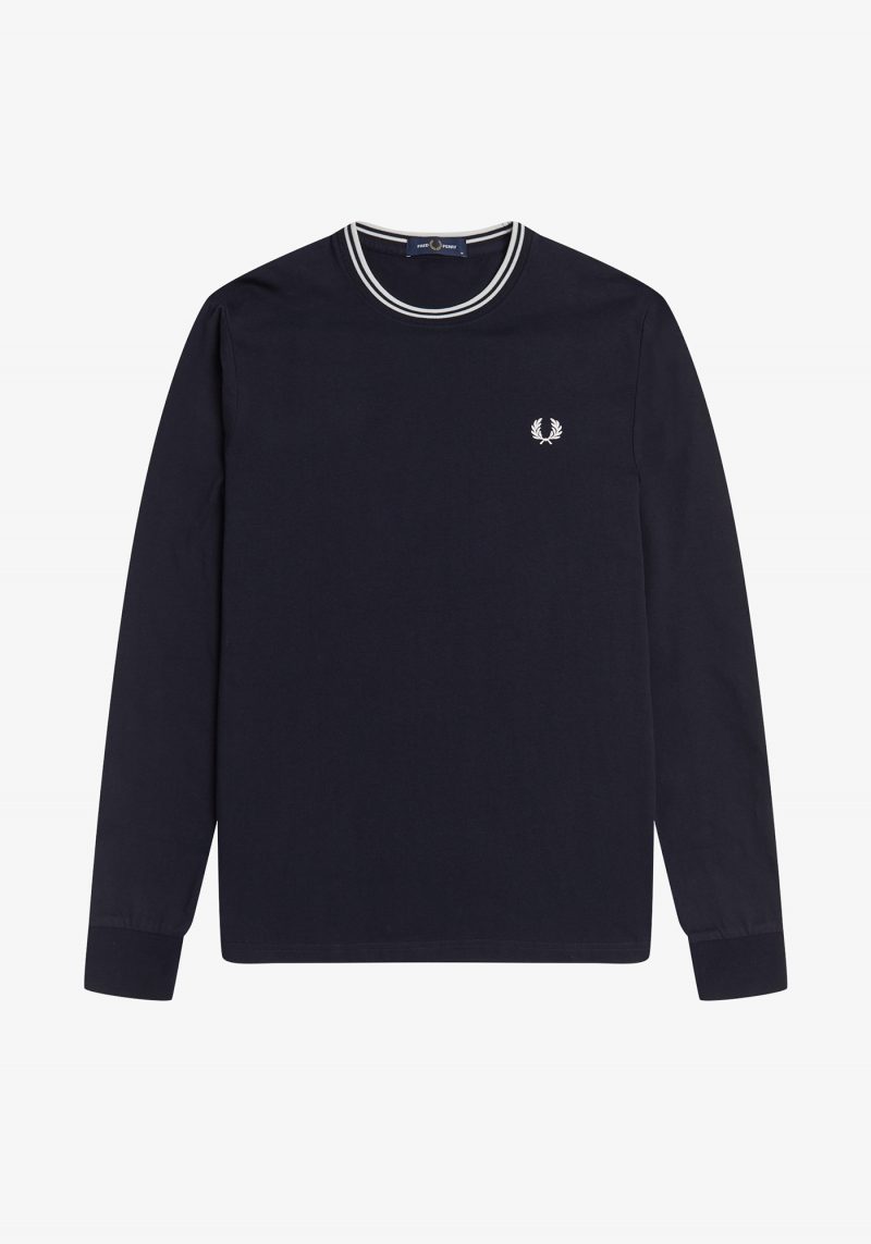 フレッドペリーのシグニチャーであるティップラインをネックに施した、クルーネックTシャツ。