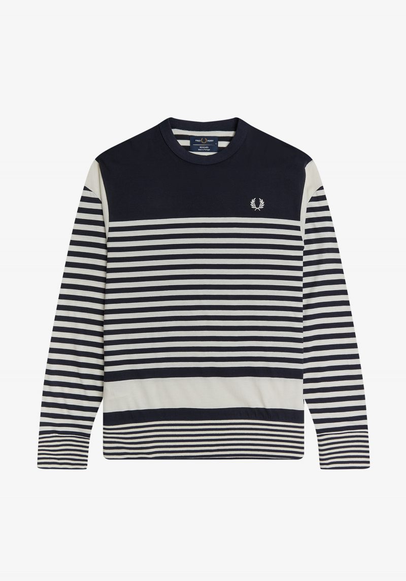 ピッチ幅の異なるマルチボーダーを採用した長袖カットソー。
