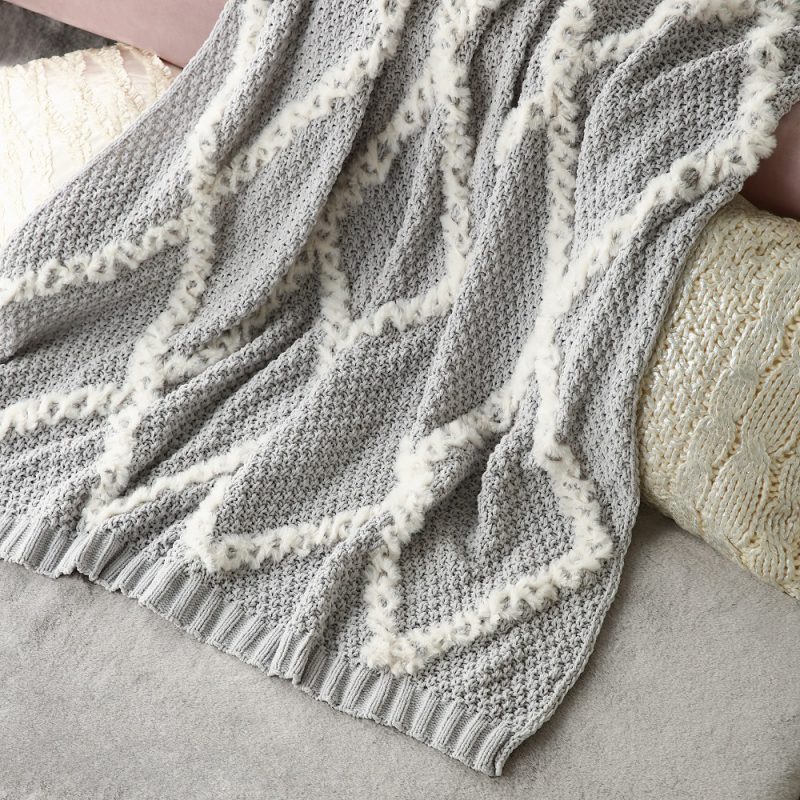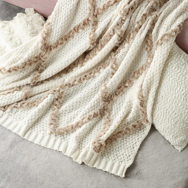ふわふわとしたフェザー糸を起毛感のあるシェニール糸と一緒に編み上げたニットスローです。