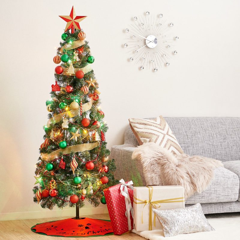 ツリー、オーナメント、ツリースカート、チェーン、リボン、ツリートップ、LEDライトが全てセットになった