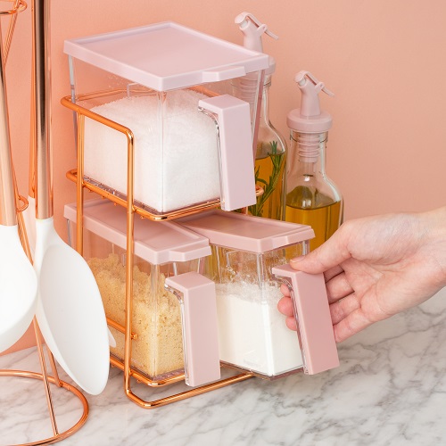 コンテナの色で調味料が見分けられるように3点全て、異なる色の組み合わせになっているのも