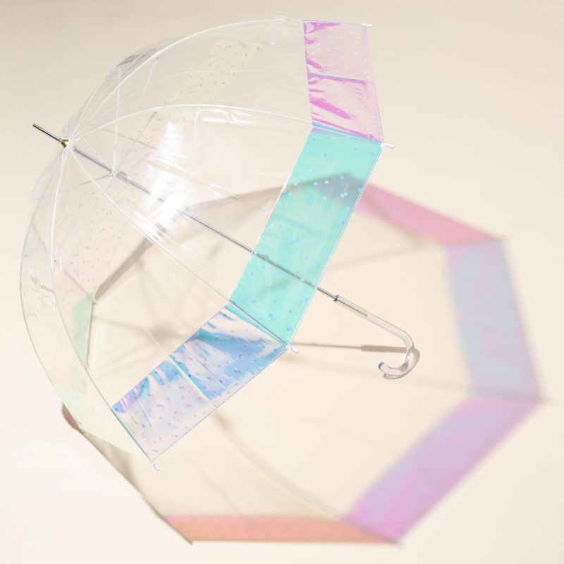 裾のリム部分のみオーロラのように反射する素材となっており、派手すぎず持ちやすいデザインです。