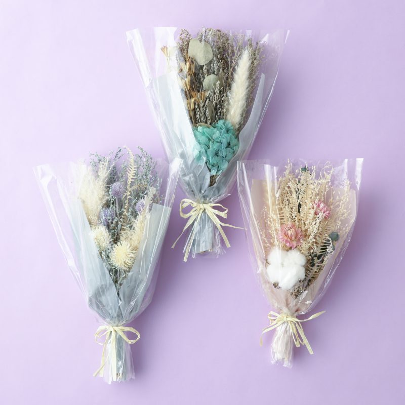 天然素材を使用しているので、ひとつひとつ表情が異なる世界で一つだけのブーケです。