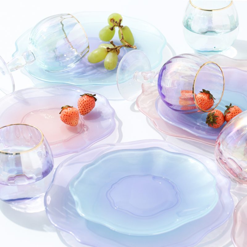ゆらゆらとした波のようなフォルムのガラスプレートは優しいグラデーションカラーが甘くて幻想的°˖✧