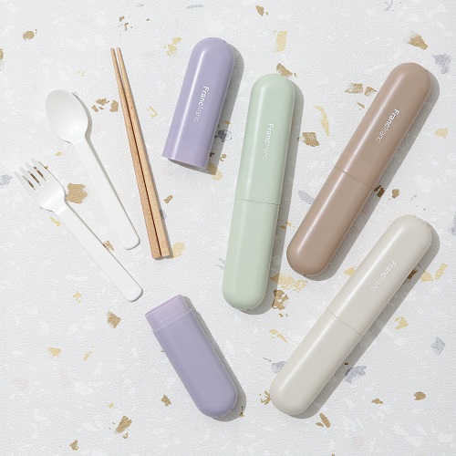 くすみカラーがお洒落なケースの中に、箸・スプーン・フォークがセットになっているので