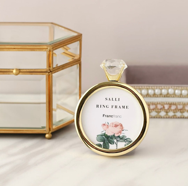 大きなダイヤの付いたエンゲージリングのような、指輪をかたどったフォトフレームです!