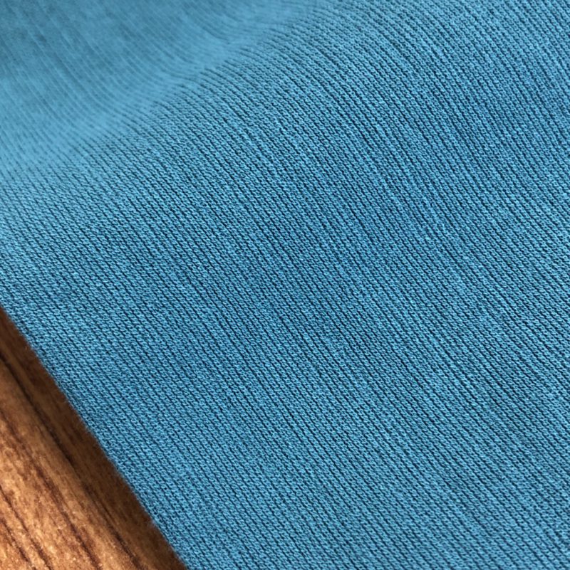 ちぢみ素材は夏の清涼素材として古くから親しまれてきましたが、その特徴であるシボ感の見た目からどうしても「和」のイメージが強かったのですが、ビワコットンはTシャツ素材のようにフラットな生地感を作り出すことで現代の洋服にマッチするようになっています。