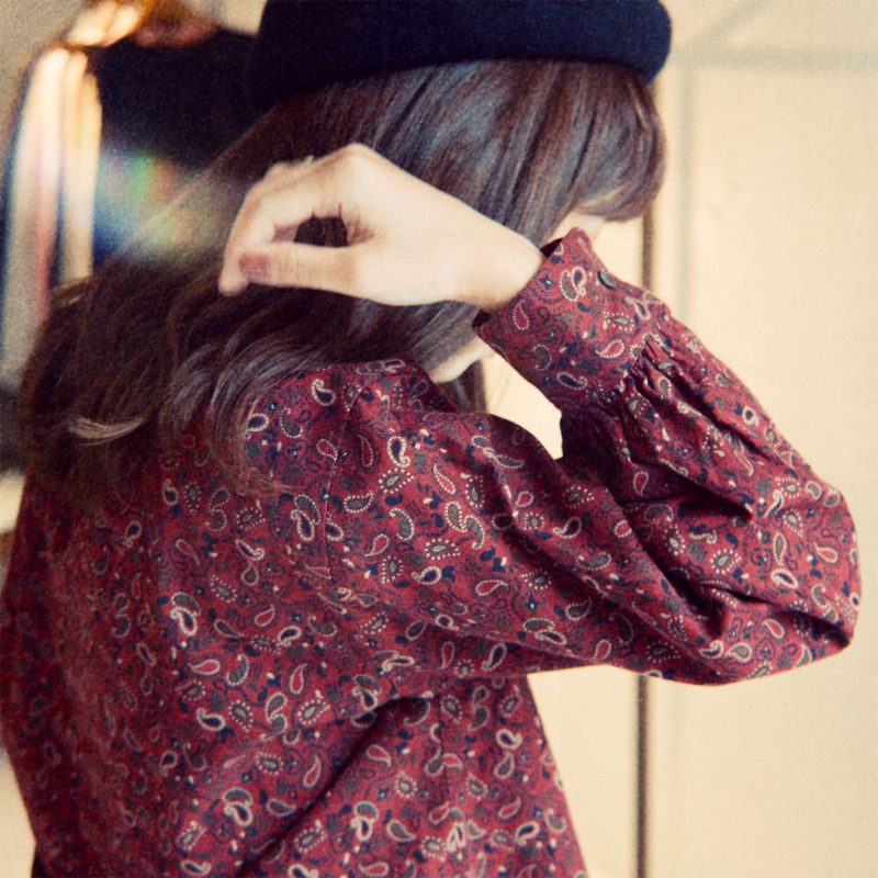 フランスのアンティークプリントをベースにした柄を、秋冬の始まりを感じさせるウール混の生地に表現。