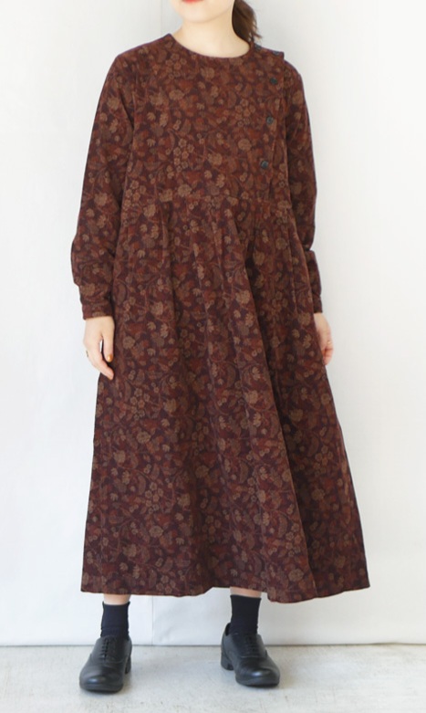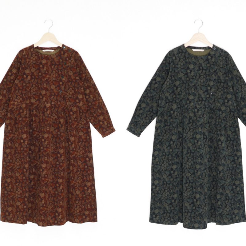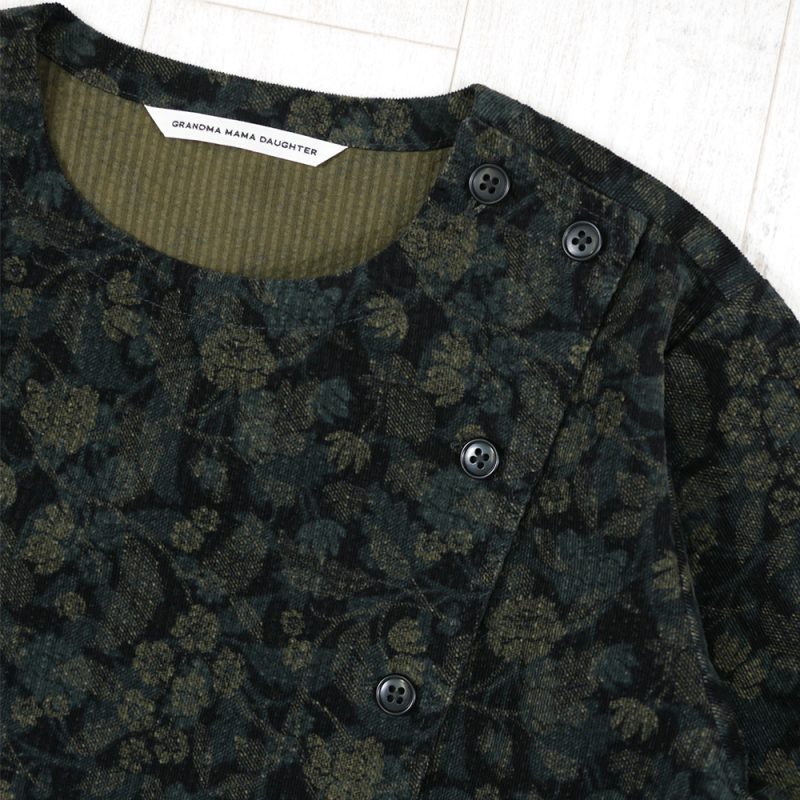 表面に凹凸を出す「リップル加工」を施したコーデュロイに、ビンテージの壁紙のようなシックな花柄がプリントされた生地を使用しました。