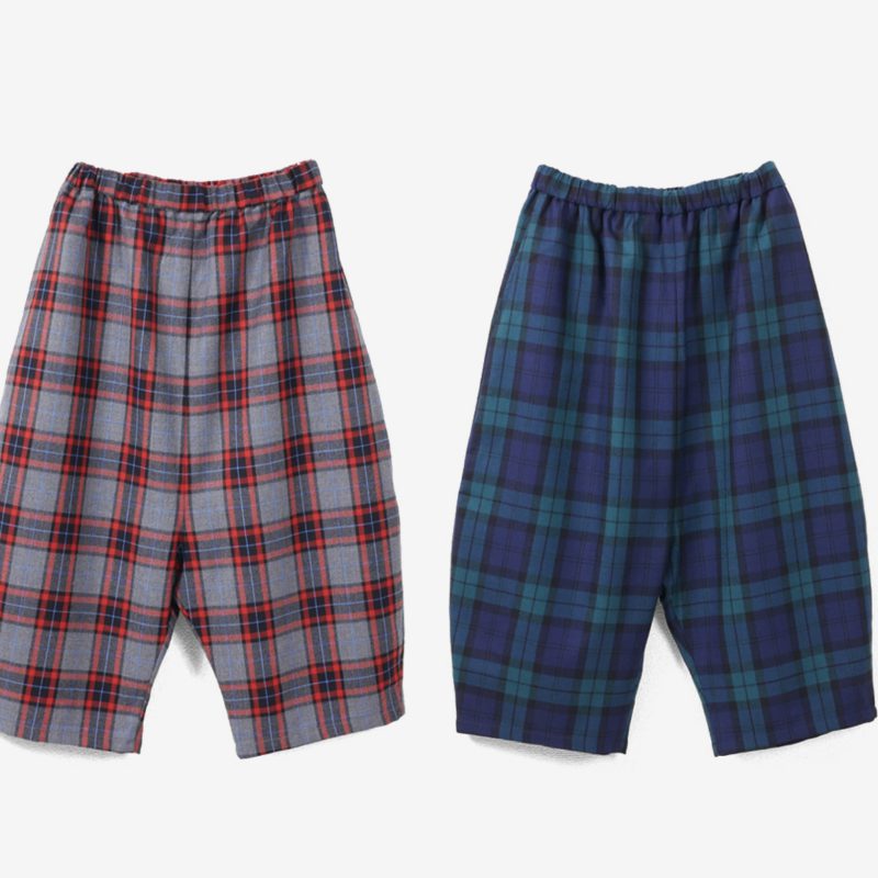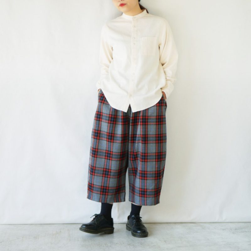 GRANDMA MAMA DAUGHTERお馴染のセミバルーンパンツがウール地のチェック柄で登場。