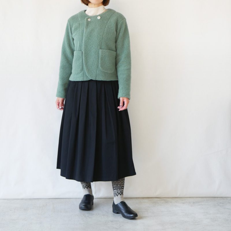 軽くて暖かいスライバー生地のジャケット。カーディガンとしてもお使いいただけるのでコーディネートの幅が広がります。