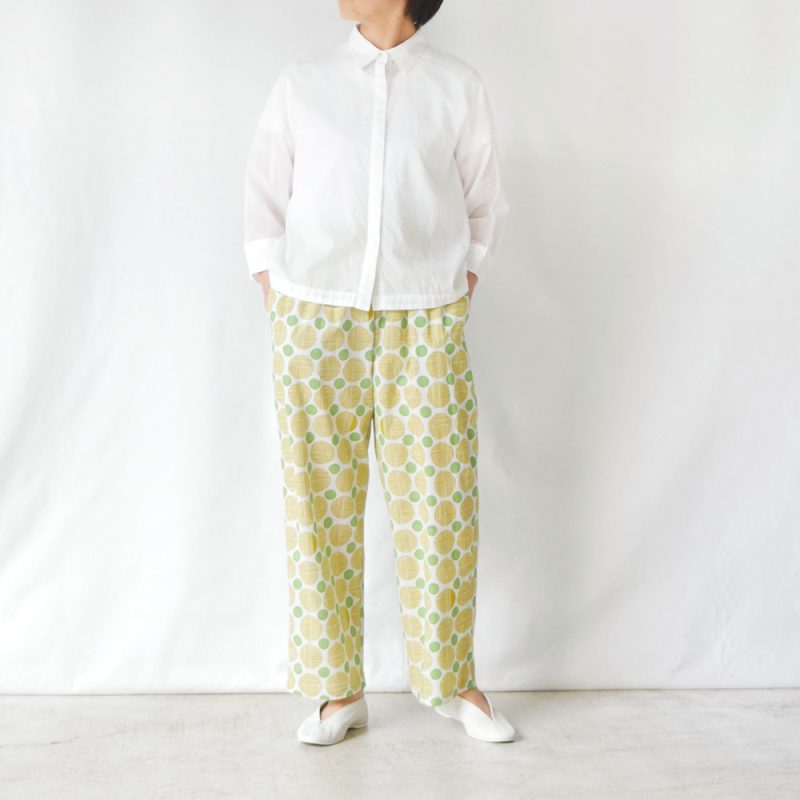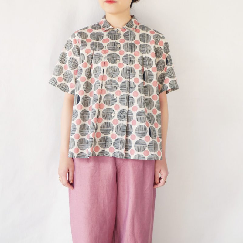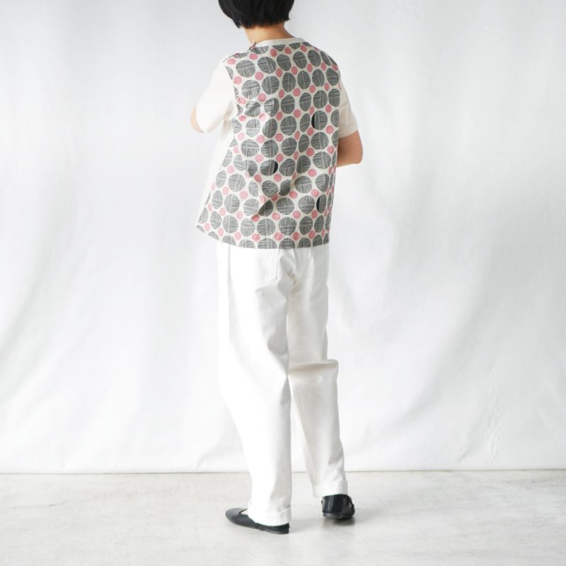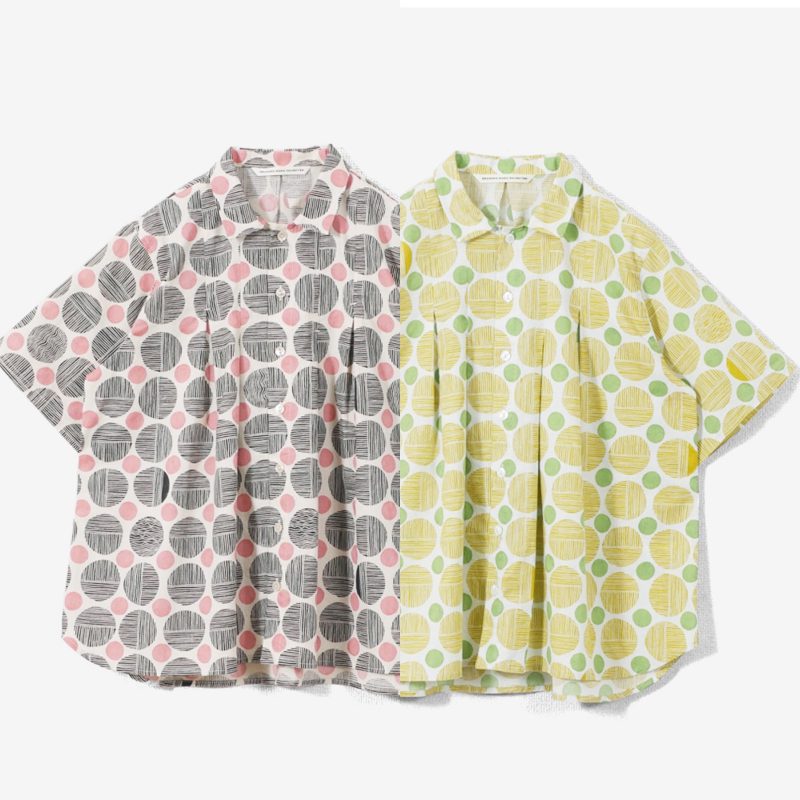 ⭐︎インドのブロックプリントのようにポンポンと手でスタンプを押したかのような風合いを、ポップなドット柄で表現しました。エスニックな要素を可愛いくポップに仕上げた柄は春の装いに彩りを加えます。