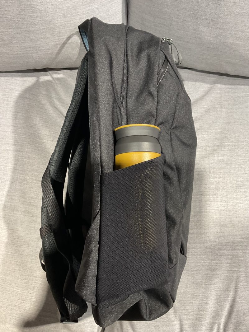 フロントポケットも底が深すぎないので直ぐに取り出したい財布や定期などを収納していただけるので使い勝手が良いですし、サイドポケットもあるので水筒や折りたたみ傘を手持ちする必要がないです。