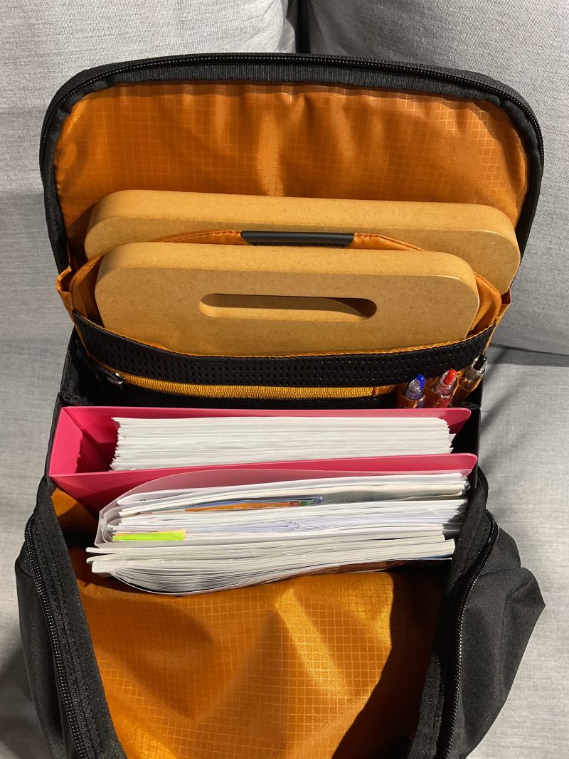 メインポケットだけで三冊の冊子と分厚いファイルを2個入れてみましたが丁度良く、まだ上部分には余裕があります。