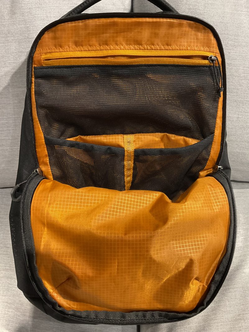 フロントポケットもメインポケットと同じで底が深いですが幅が広くないので分厚い物を収納するのには向いていませんがメッシュポケットが3つもあるので小物を仕分けるのに適しています。