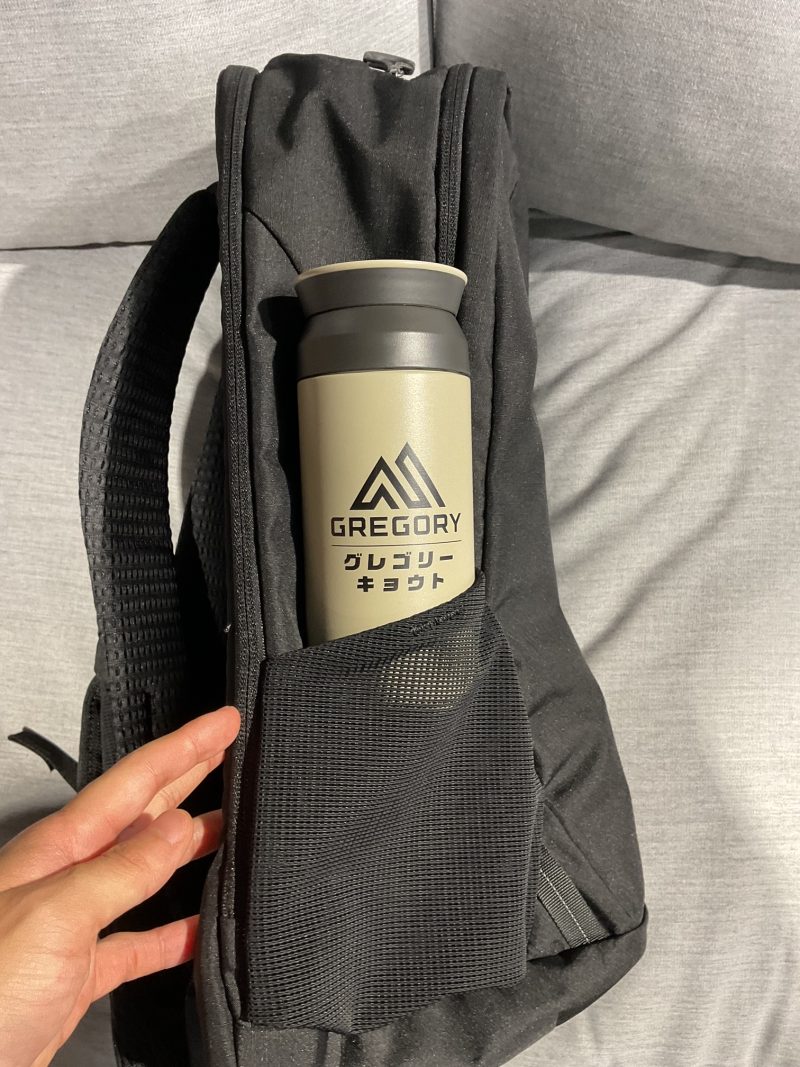 サイドには折りたたみ傘が入るくらいのポケットと水筒を収納していただけるメッシュポケットがあります。