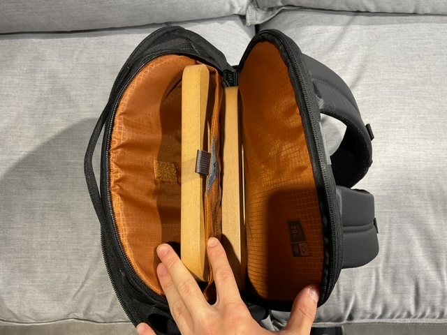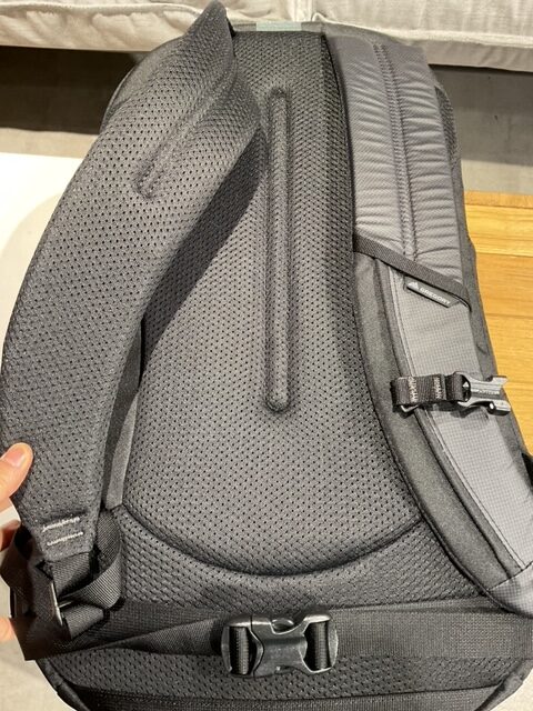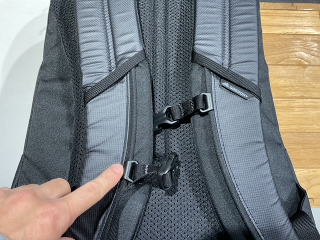 背面とショルダーは夏でも快適に使用していただけるメッシュ構造になっていて、背骨が当たる部分にフィットするように凹凸はあるので背負い心地が良いです。