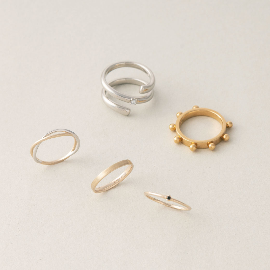 ピンキーリング(上から時計回りに)¥12,100/¥8,800/¥15,400/¥24,200/¥25,300