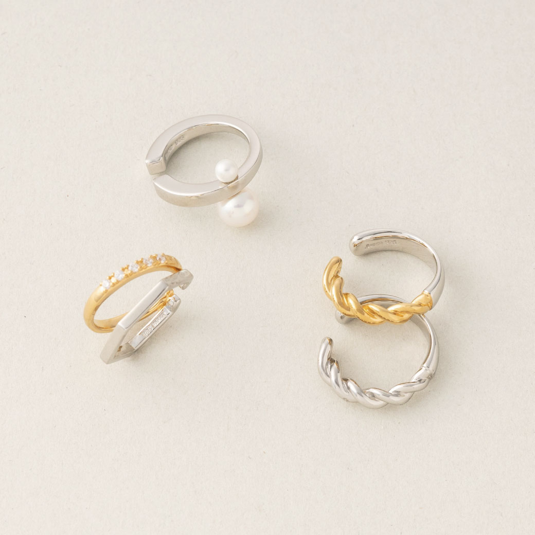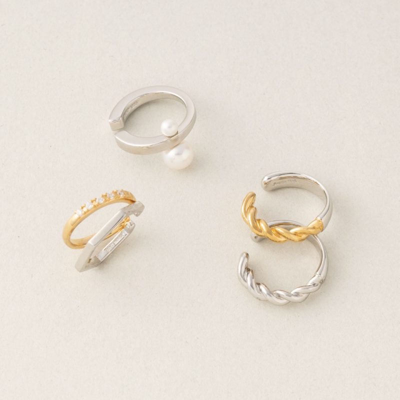 イヤーカフス(左上から時計回りに)¥11,000/¥8,800/¥7,700/¥12,100