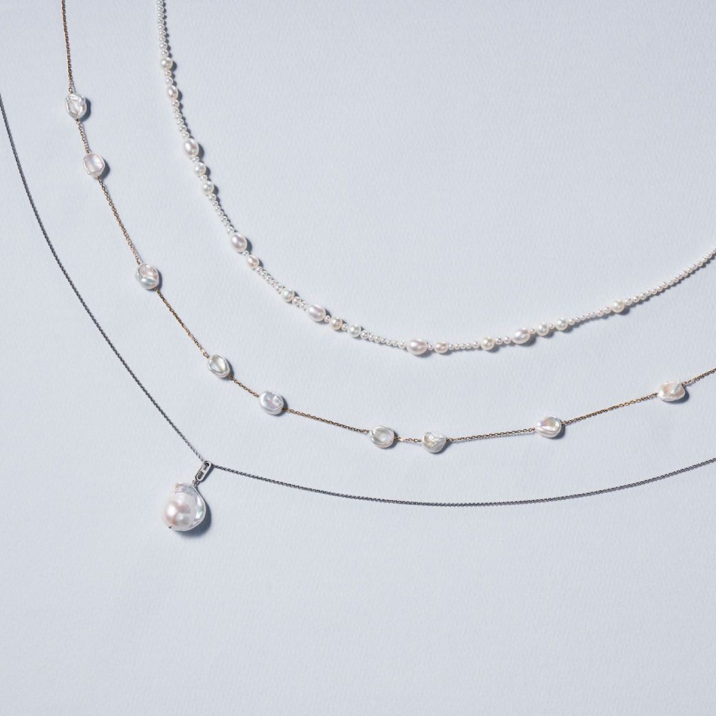ナチュラルな形状で唯一無二の表情が楽しめる「パールネック」や、主役級の印象を与える「SVリング/フォークリング」に新作デザインが登場。そのほか、落ち着いた印象の輝きで品のある佇まいの「K10ネックレス」など幅広いラインナップとなっております。