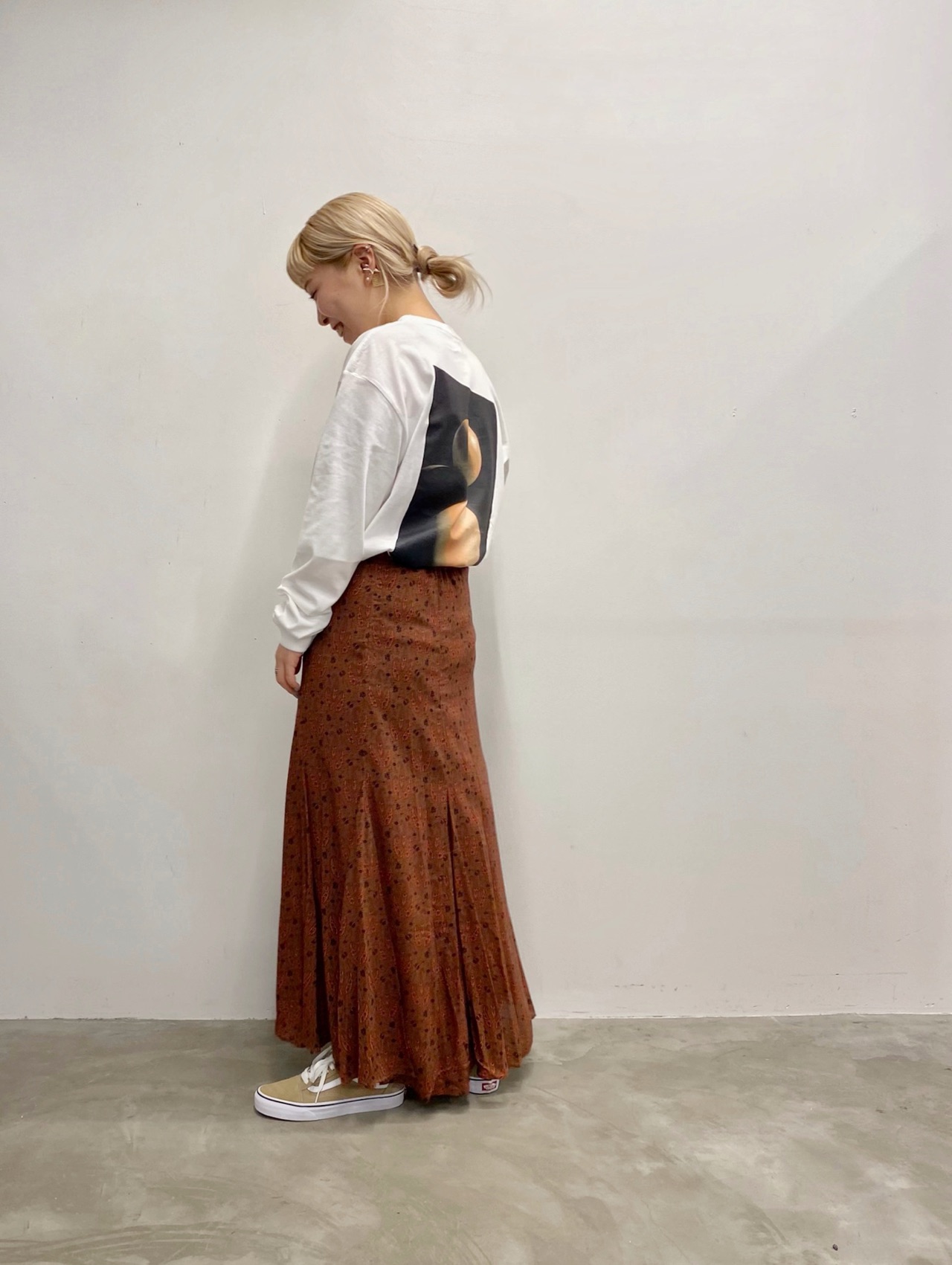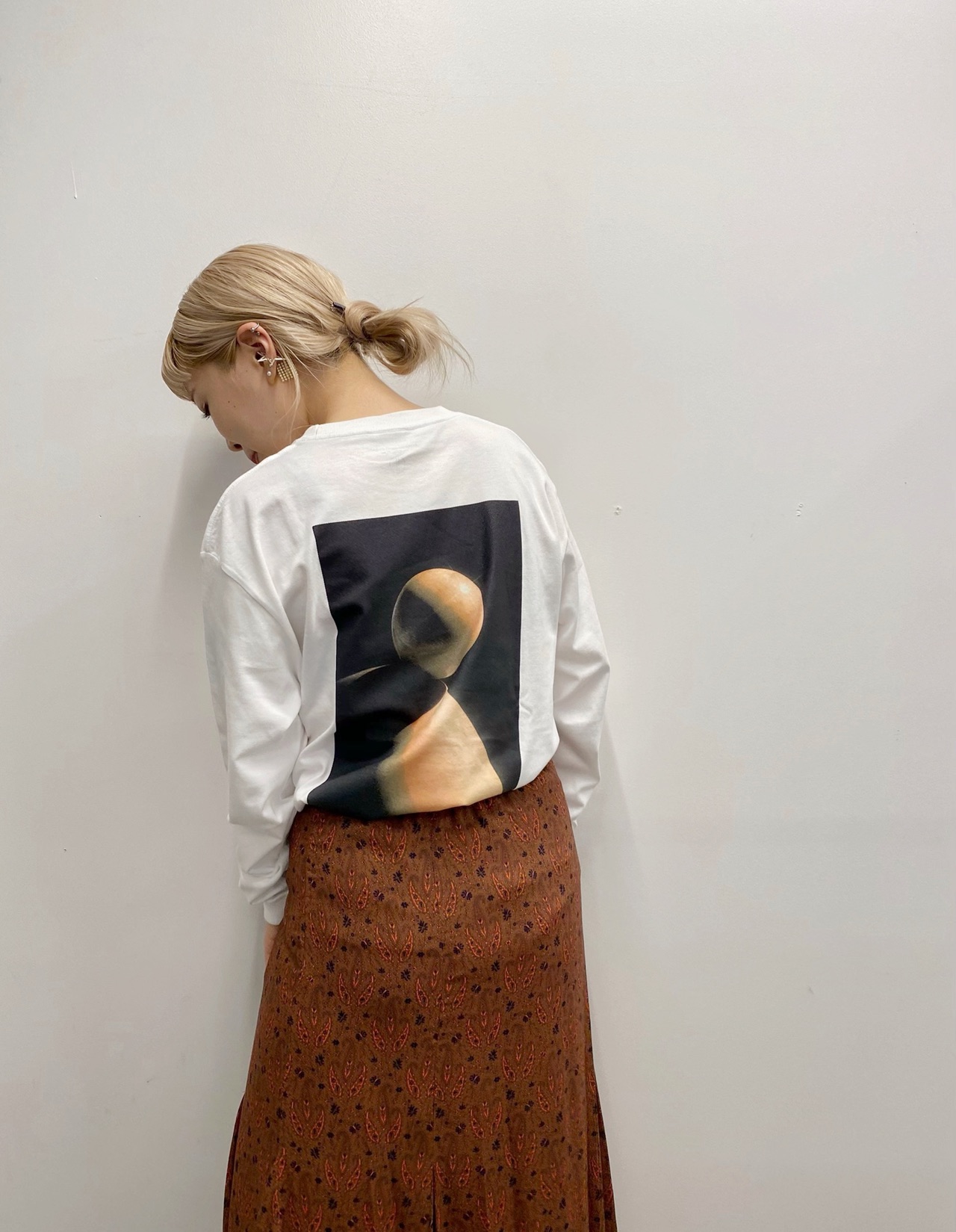 印象的なバックプリントを使用したロングTシャツは、秋の主役になるアイテムのひとつ。