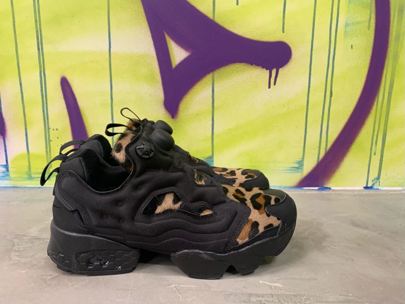 アニマルプリントのアクセントをあしらったレトロなシューズ。