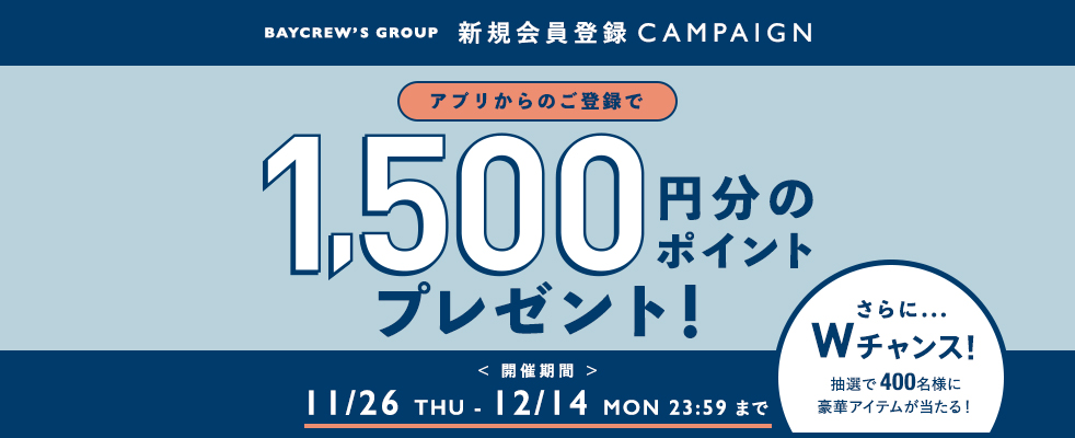 キャンペーン期間中にBAYCREW’S STORE公式アプリからご登録いただくと、