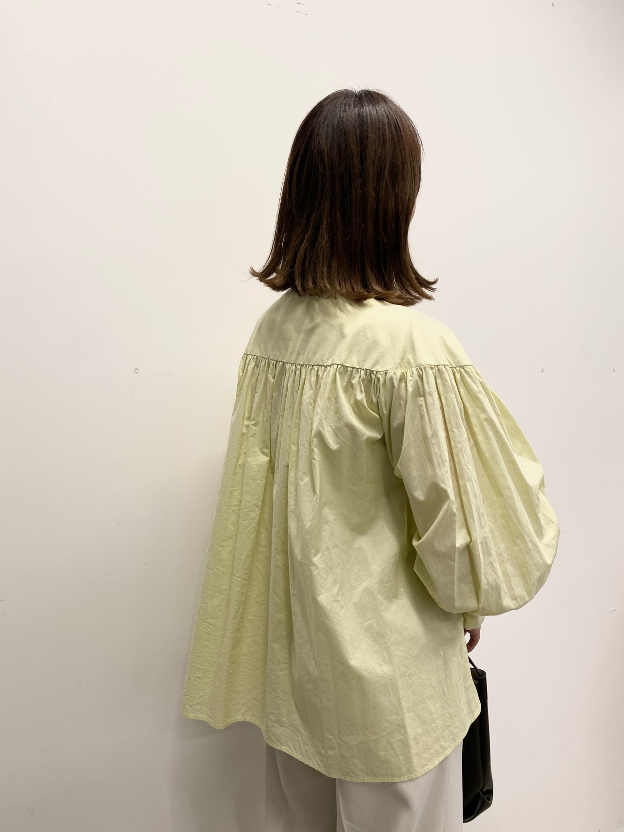 ギャザーが入っているヨーク部分に拘り、後ろ姿も素敵なブラウスになっています。