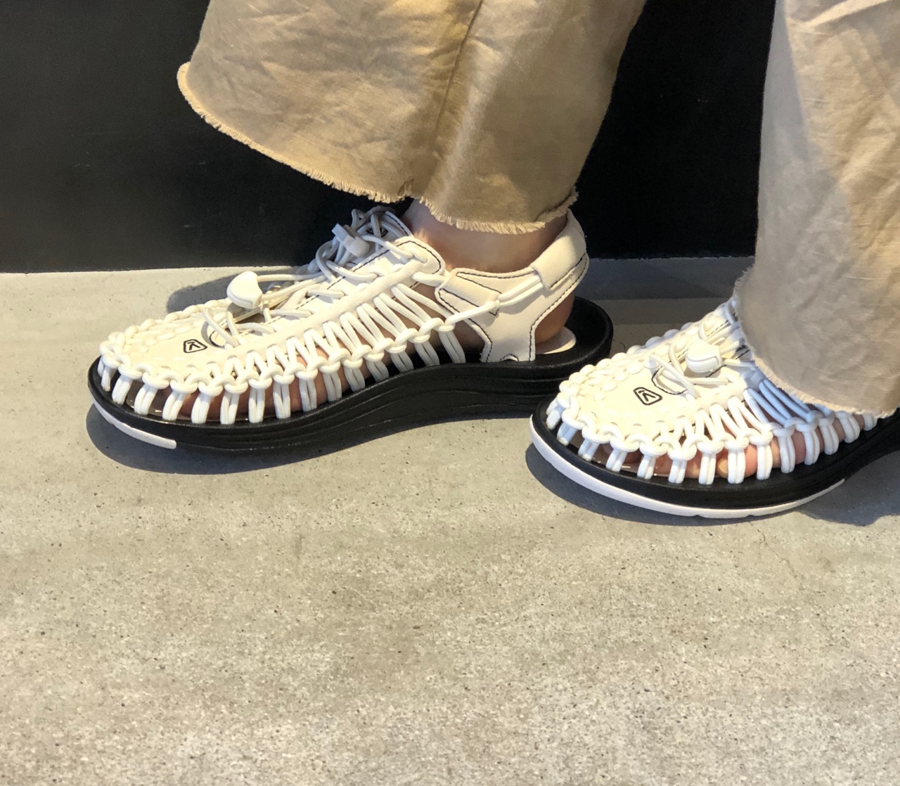 UNEEKの特徴でもあるコード、ソール、ドロストなどを含めた