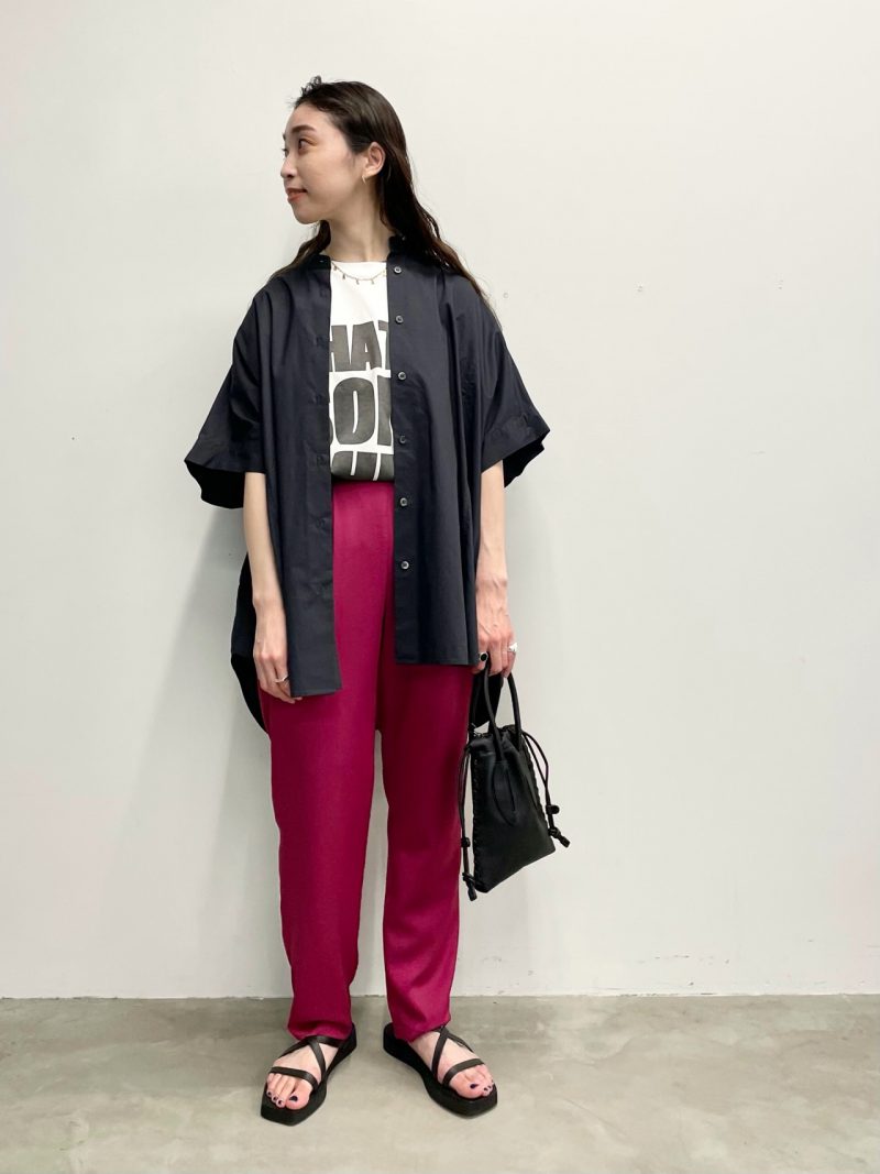 カラーパンツとの馴染みも良く、すっきりしたシンプルなボトムスにもアクセントになります。