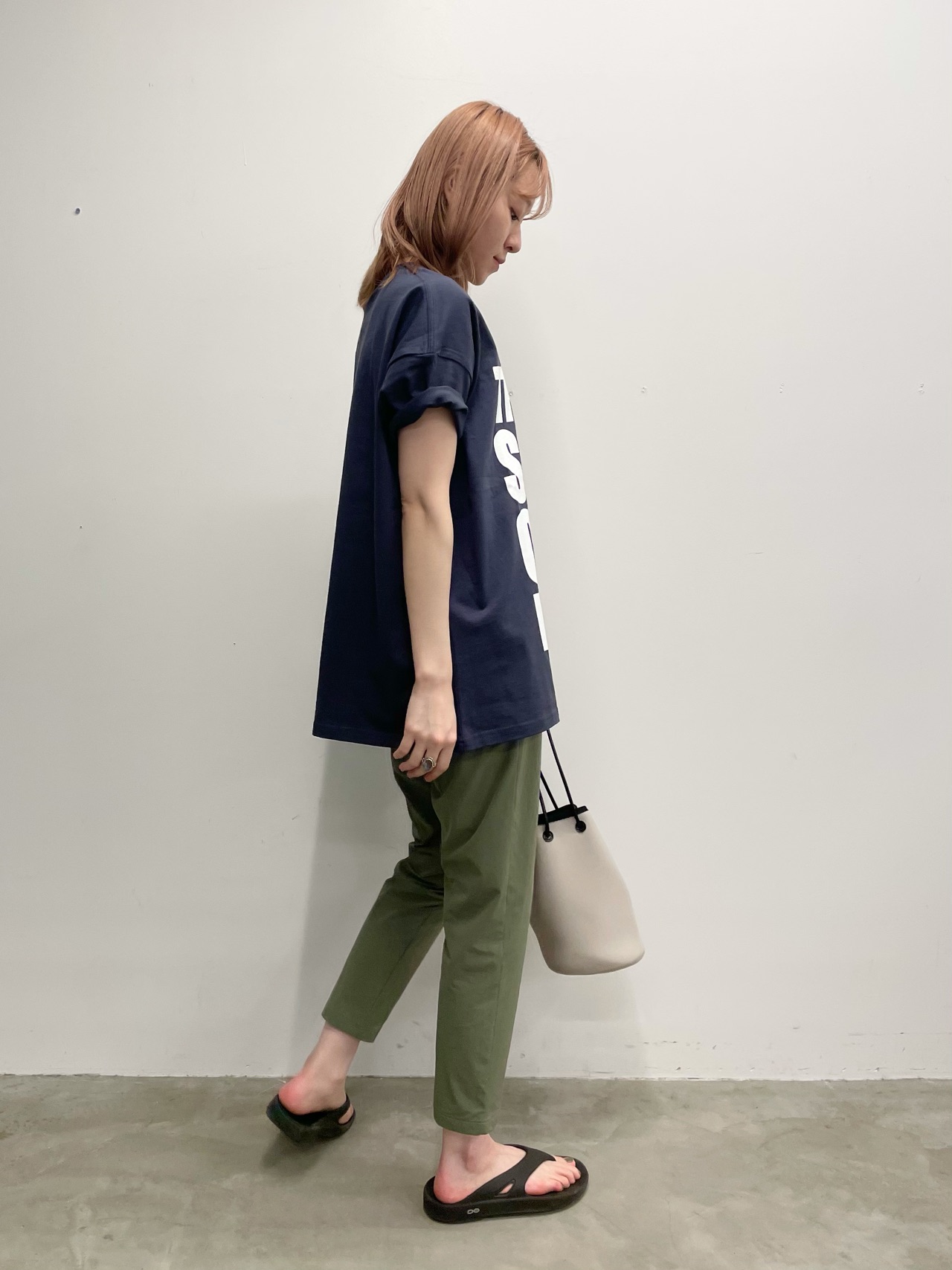 2つめは、ロゴのインパクトを更に主張してくれ可愛い色味のスミクロの着こなし。