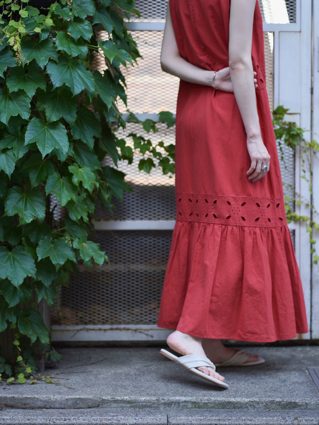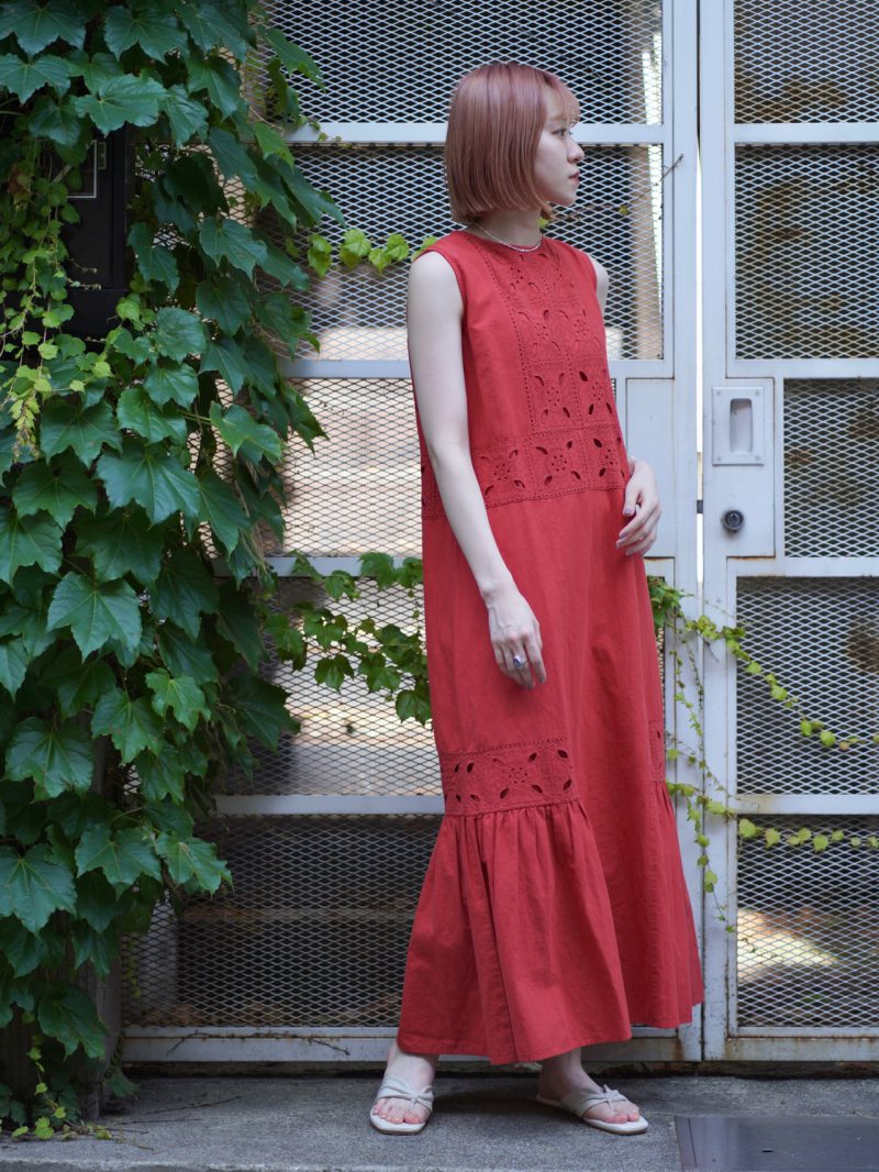オリジナルのカットワークレースが目を引くワンピース。