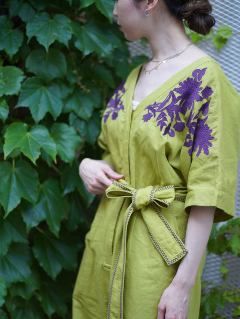 胸元にあしらった植物モチーフの刺繍は、インドならではの色彩センスを反映したSARA MALLIKAらしい配色です。